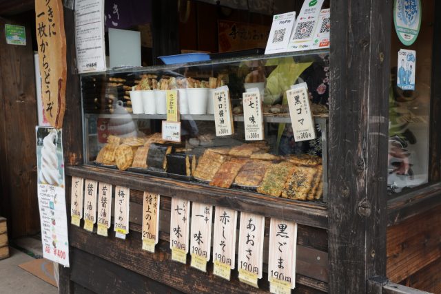 せんべいやおやき、中津川の郷土食でもある五平餅など、食べ歩きもおすすめです。